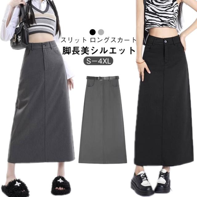 ナロースカート スリット ロングスカート タイト スカート レディース ロング タイトスカート バックスリット ストレート ハイウエスト オフィス キレイめ Aライン 上品 春 夏 秋 冬 グレー ブラック 20代 30代 40代 送料無料