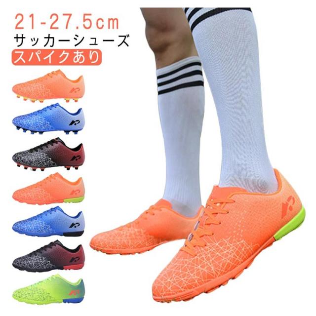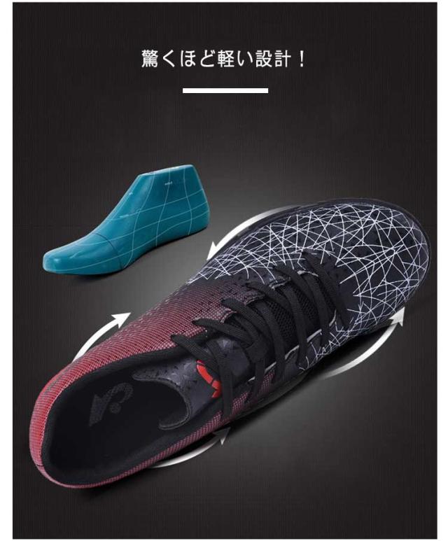| サッカーシューズ 21-27.5cm スパイクあり 抜群の機能性と履き心地で、自分史上、最高のプレーを! 靴内は通気性とクッション性のあるメッシュ生地を使用し、蒸れにくい構造 驚くほど軽い設計! | |