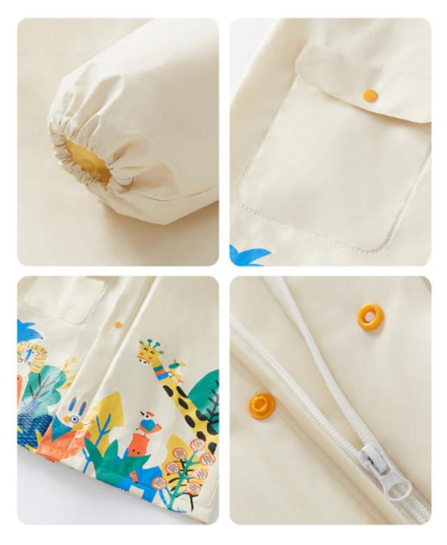 | スナップボタンとファスナーの仕様で水の侵入をしっかり防ぎます。 TPUで防水コーティング処理されていて、防水性が良くて台風や梅雨時期には役たちます。 撥水効果により汚れにくく、お手入れも簡単です。 ランドセルやリュック、通園カバンを背負ったまま着用できるため、すぐに着られてカバンが濡れる心配がありません。 透明なフードで視界が確保され、深くかぶっても視野が狭くなりません。 袖口にはゴムが入っており、しっかりとフィットして水の侵入を防ぎます。 | |
