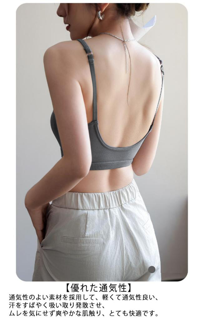 | 【動きやすい、ズレにくい!】 仕事に、家事に運動に…アクティブに生きる女性のからだの動きを考え て作られたノンワイヤースポーツブラ。 動いてもカップがズレ上がりにくい仕様に。 からだの動きについてくるフィット感を実現しました。 【ホック付きUバック】 ぴったりフィットして安定感のあるつけごこち、 ブラジャーが脱げにくい悩みを解決して、フィット感をアップさせます。 【一体型カップ】 ノーワイヤーのデザイン、もっと快適なスポーツ体験を与え、 ズレる心配がなく、洗濯時にも便利! 【優れた通気性】 通気性のよい素材を採用して、軽くて通気性良い、汗をすばやく吸い取り発散させ、 ムレを気にせず爽やかな肌触り、とても快適です。 【快適な着心地】 ストレッチよい素材を使い、より科学的なカットによりフィット感をアップさせ、 フィット感を保ちつつ体の動きを邪魔しません。 | |