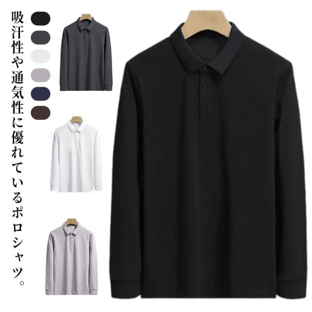ポロシャツ メンズ 長袖 吸汗 通気 ポロシャツ おしゃれ カジュアル トップス 無地 ゴルフウェア シンプル スポーツ 春 秋 学生 大人 大きいサイズ 送料無料