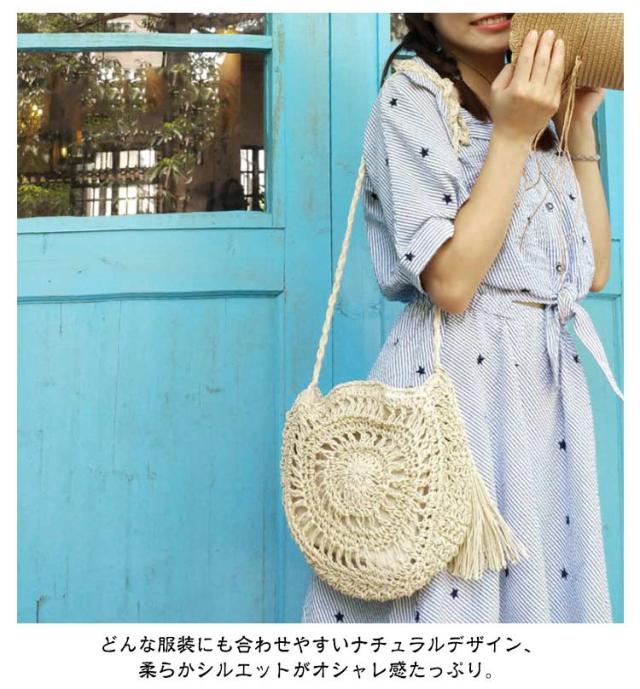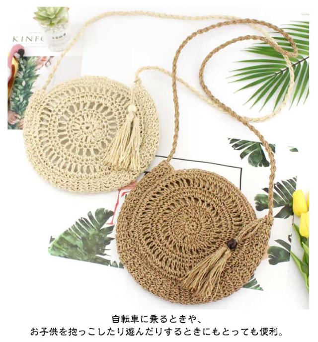 | オシャレ女子の必需品は入る大きさのミニバッグです♪ どんな服装にも合わせやすいナチュラルデザイン、 柔らかシルエットがオシャレ感たっぷり。 ストロー素材はとても軽くて張りがあり、しかもしわになりにくいので夏の旅行のサブバッグにもピッタリ。 開け口はファスナー式で、大きく開閉できて、内側の荷物が覗かないのも安心です。 自転車に乗るときや、お子供を抱っこしたり遊んだりするときにもとっても便利。 | |