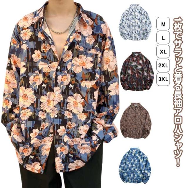 アロハシャツ メンズ レディース 長袖アロハシャツ 総柄 花柄 カジュアルシャツ トップス 男女兼用 長袖シャツ 柄シャツ ゆったり リゾート 旅行 涼しいシャツ 前開き レトロ 南国風 送料無料