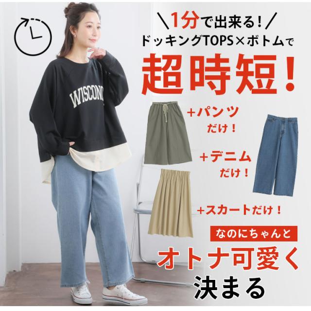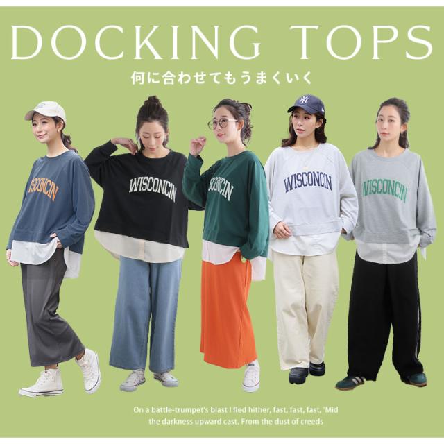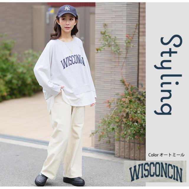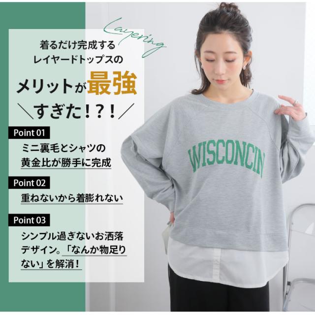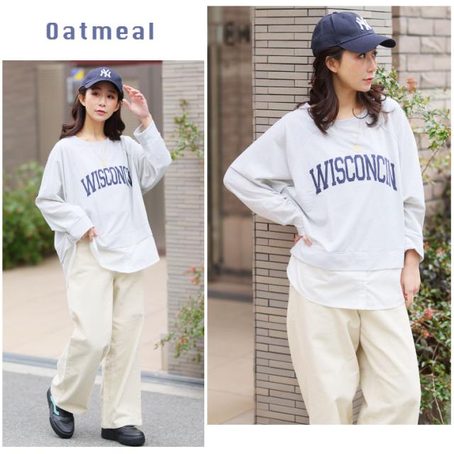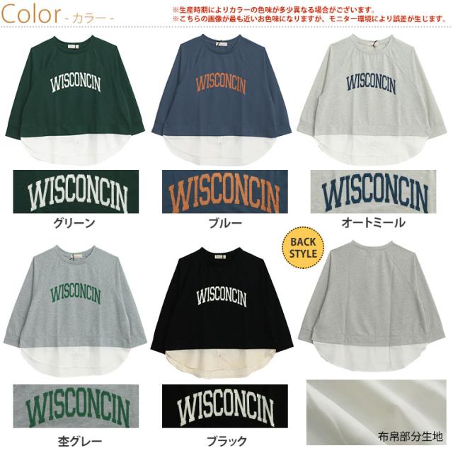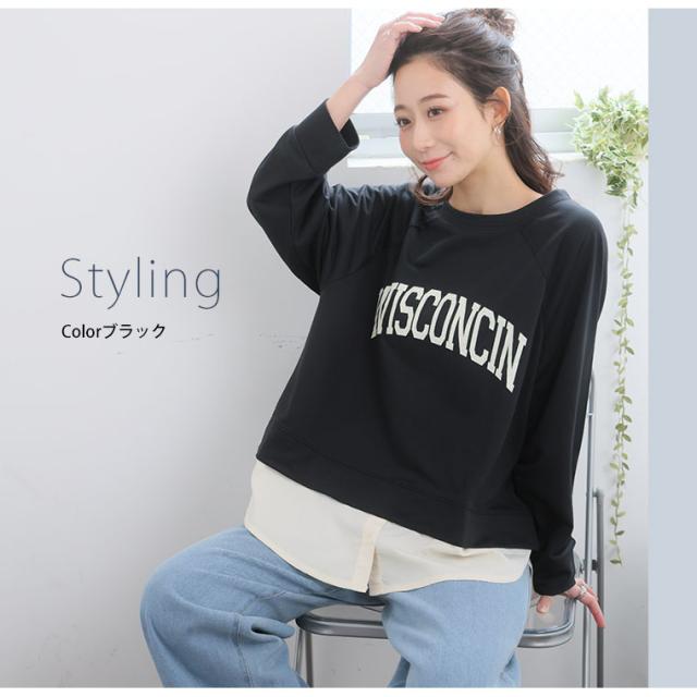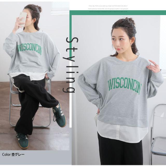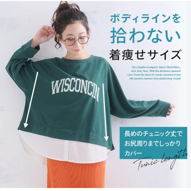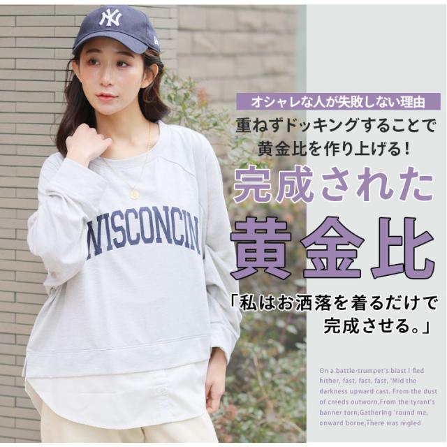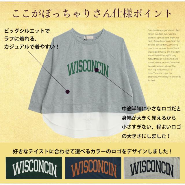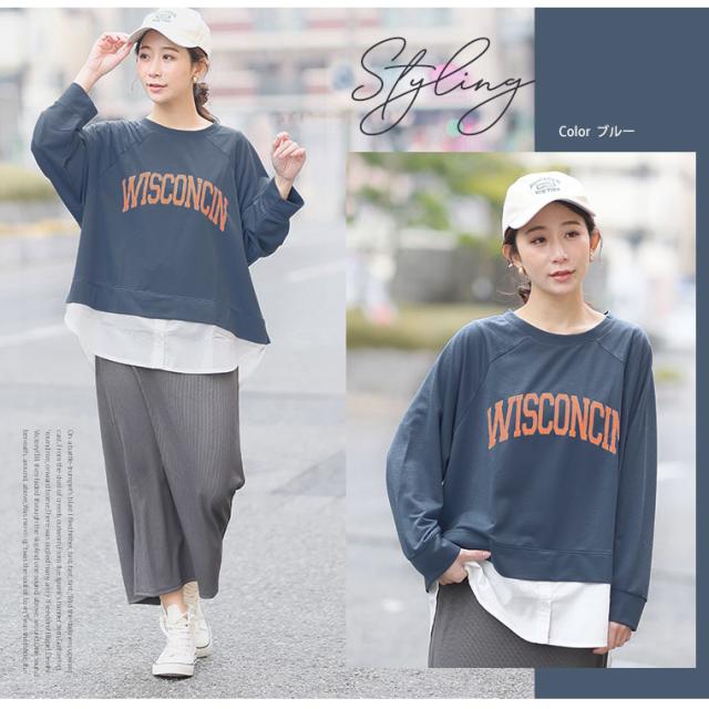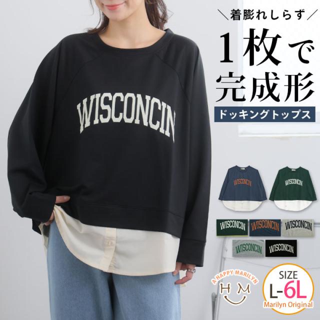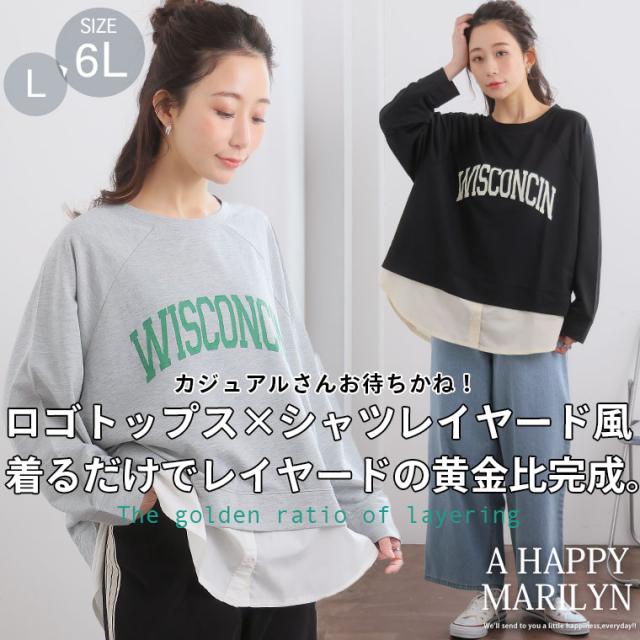 新作 大きいサイズ レディース トップス | カレッジロゴ レイヤード風デザイン ロンT [861653] LL 3L 4L 5L 6L