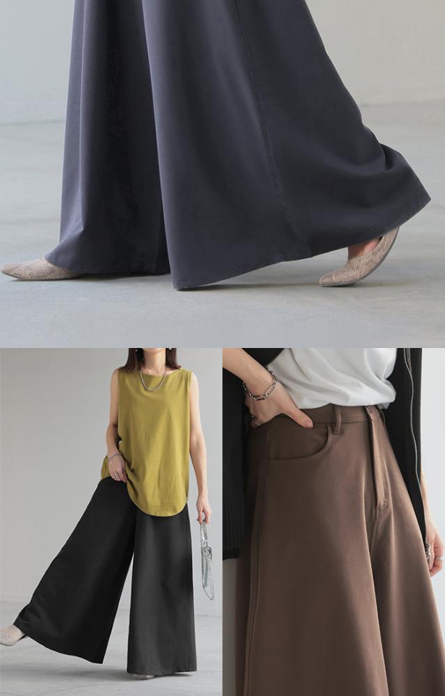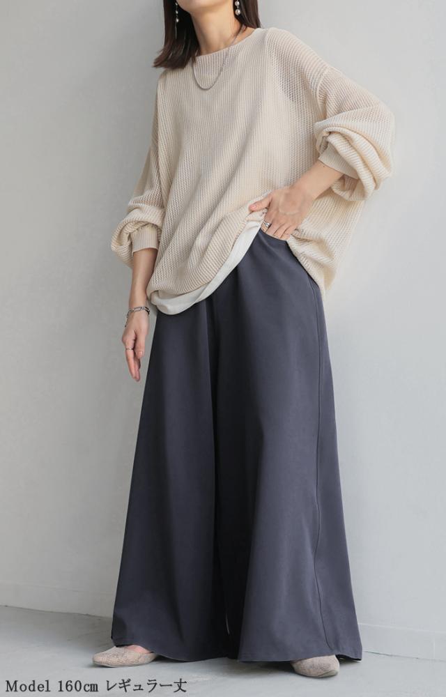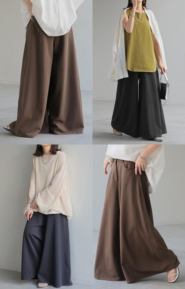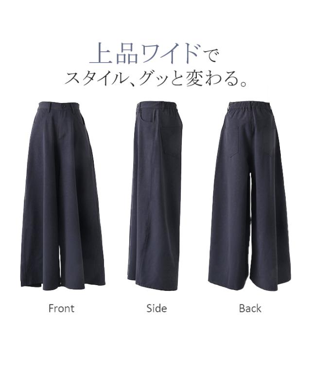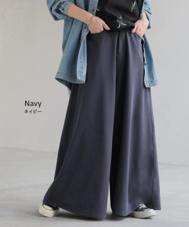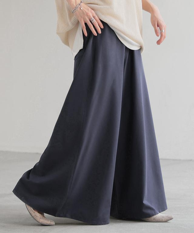 たっぷりの生地量が優雅なシルエットを作りだすワイドパンツです。