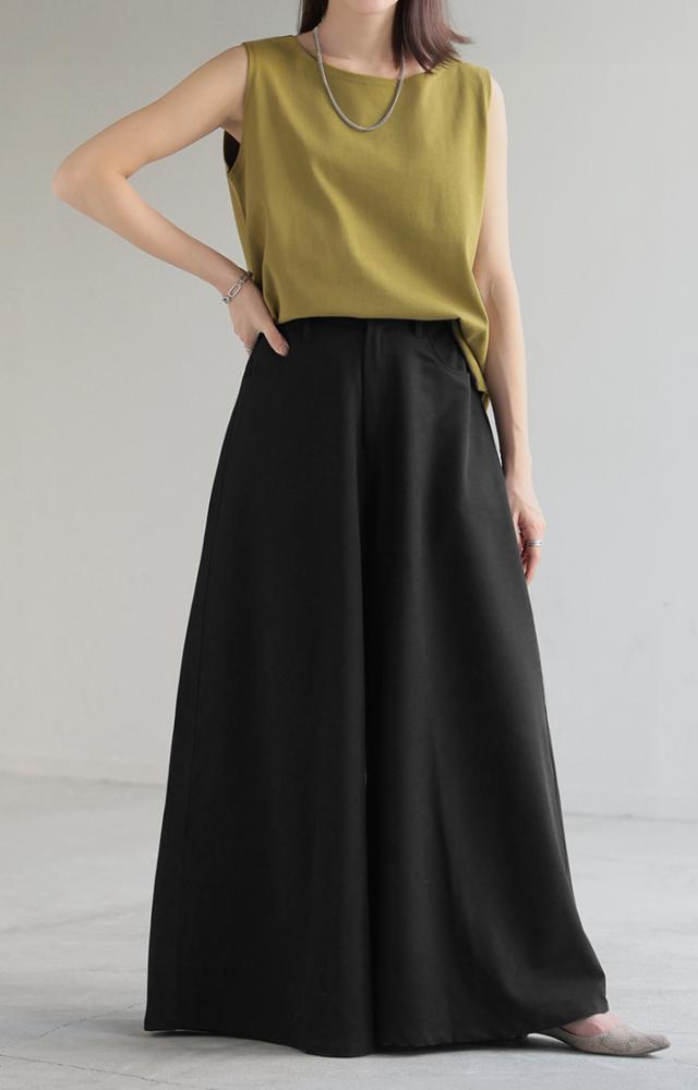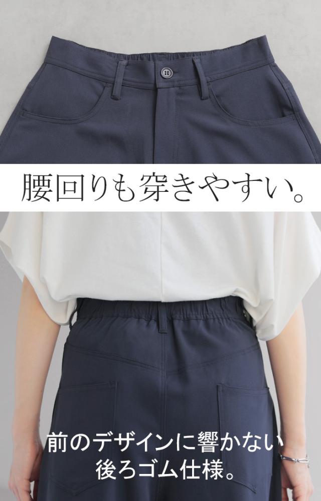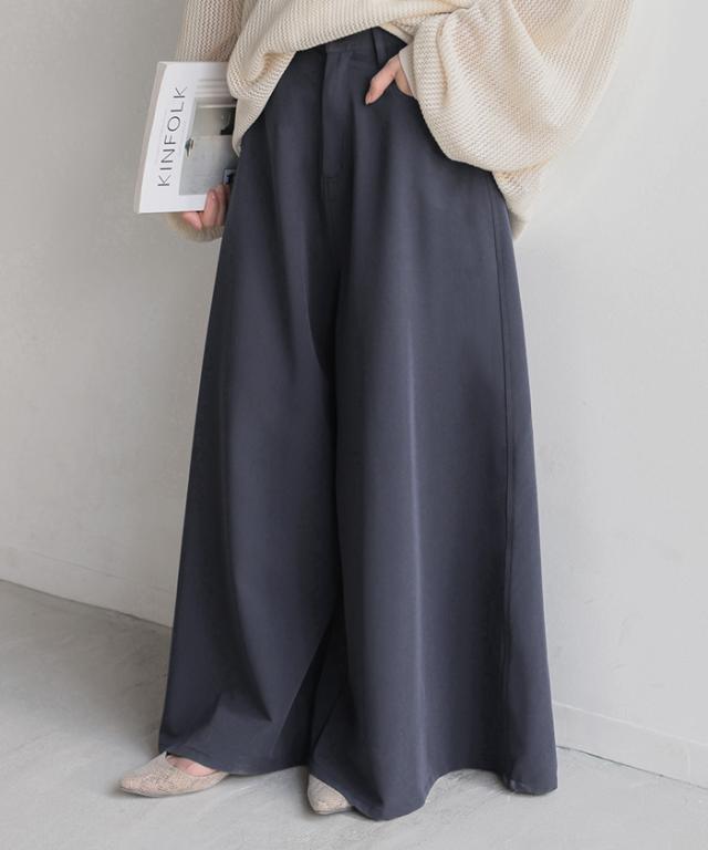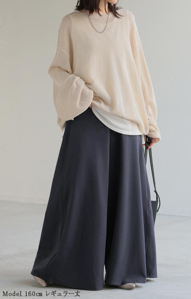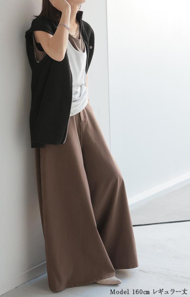 たっぷりの生地量が優雅なシルエットを作りだすワイドパンツです。