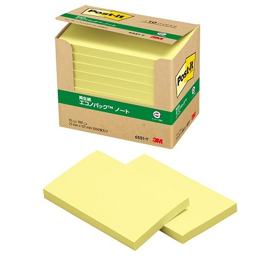スリーエム(3M) ポストイット エコノパック ノート イエロー 75×127mm 入数:1パック(10パッド) 6551-Y(71296)