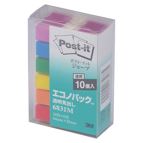 スリーエム(3M) ポストイット エコノパック フィルム 透明見出し 多色アソート 44×10mm 入数:1パック(60パッド) 6831M(40987) 6831M 40987 メモパッド メモ帳 粘着メモ メモ用紙 メモ POST-IT POSTIT ポスト・イット ラベル ふせん 付箋 オフィス用品 事務用品 OA用品 文具 文房具 tool ツール 工具 整備 用品 4519001632685 507634000