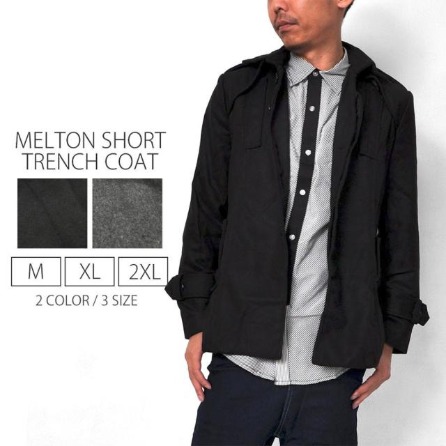 tsa 完売御免 メルトン ショートトレンチコート メンズ ステンカラー #T930c1 アウター ジャケット JKT BL