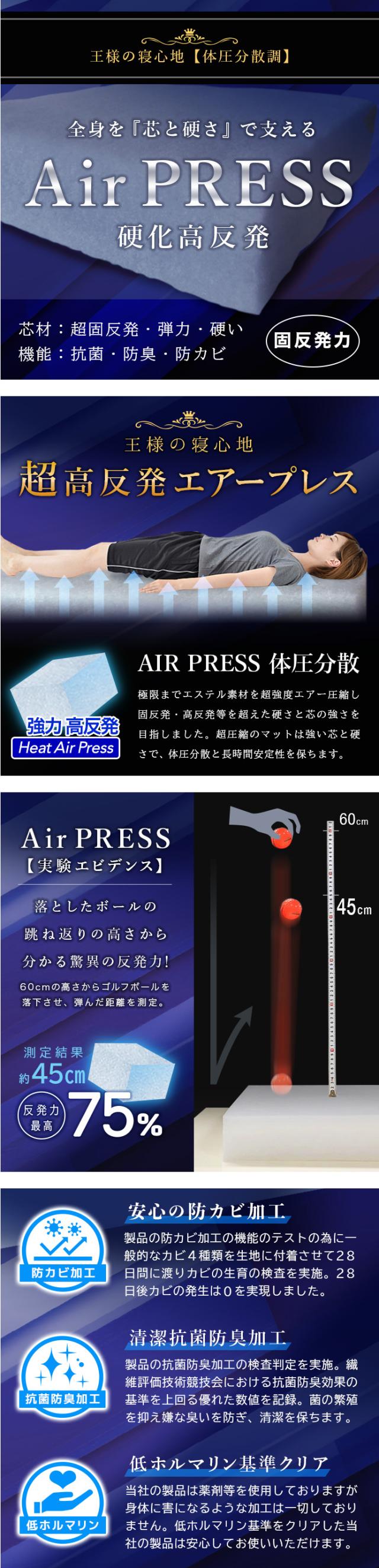 日本製 マットレス 選べる6サイズ 【約50×100cm・約50×150cm】【約70×120cm・約80×130cm】 【約70×150cm・約70×180cm】 シート クッション 高反発 敷布団 MA お昼寝 マット 長座布団 エアープレス 厚さ 約5cm 少し 硬め ソファ クルマ 車中泊 子供用 ごろ寝 ヨガ 国産