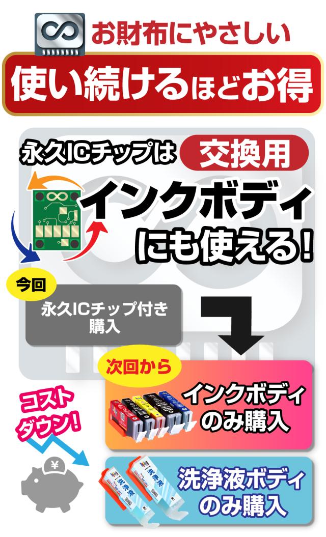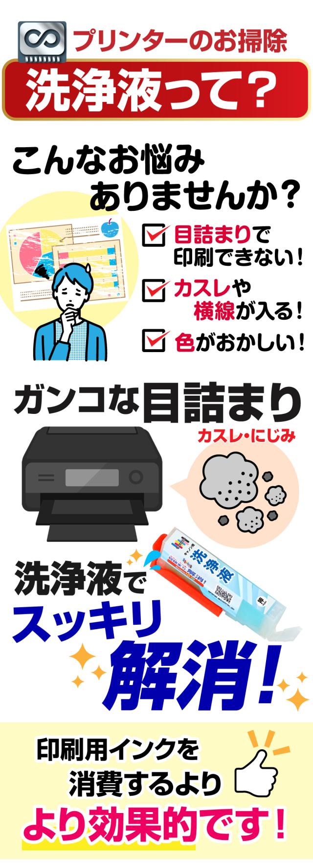 | インクの目詰まりやカスレを洗浄解消する、繰り返し使える永久ICチップ付きの洗浄液カートリッジです。 | |
