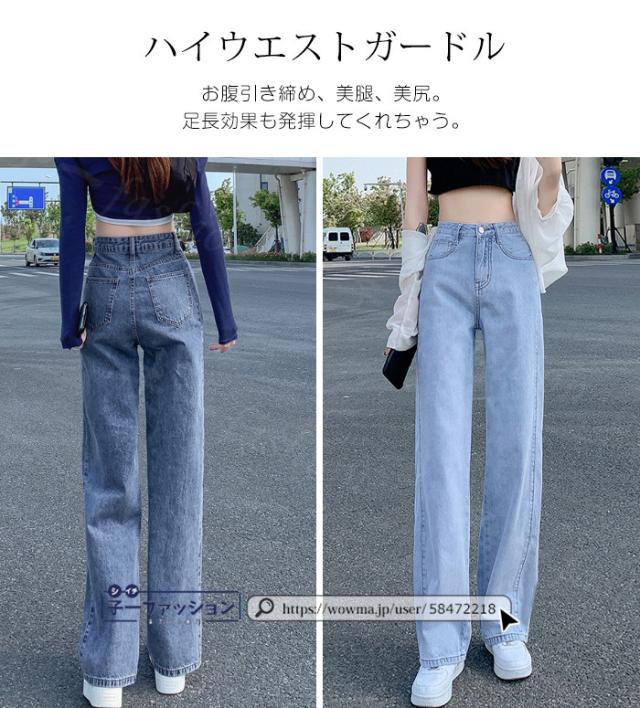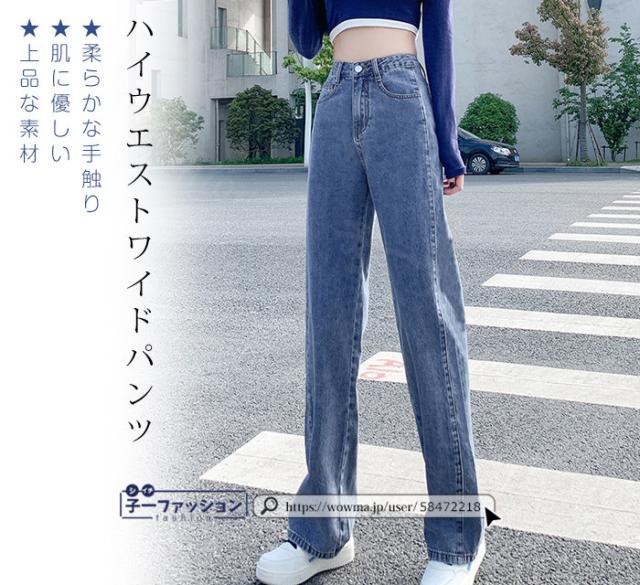 <1点2,350円!クーポン利用で>デニムパンツ 冬新作 新作 ジーンズ 着痩せ ハイウエスト ワイドパンツ レディース ロング丈 ボトムス カシュアル 体型カバー ゆったり ハイウエスト 体型カバー ポケットあり 美脚 ズボン 秋冬