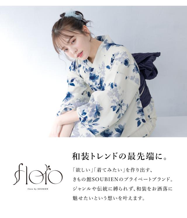きもの館SOUBIENのプライベートブランド『floro by SOUBIEN』(フローロ)の華やかな女性用浴衣です。