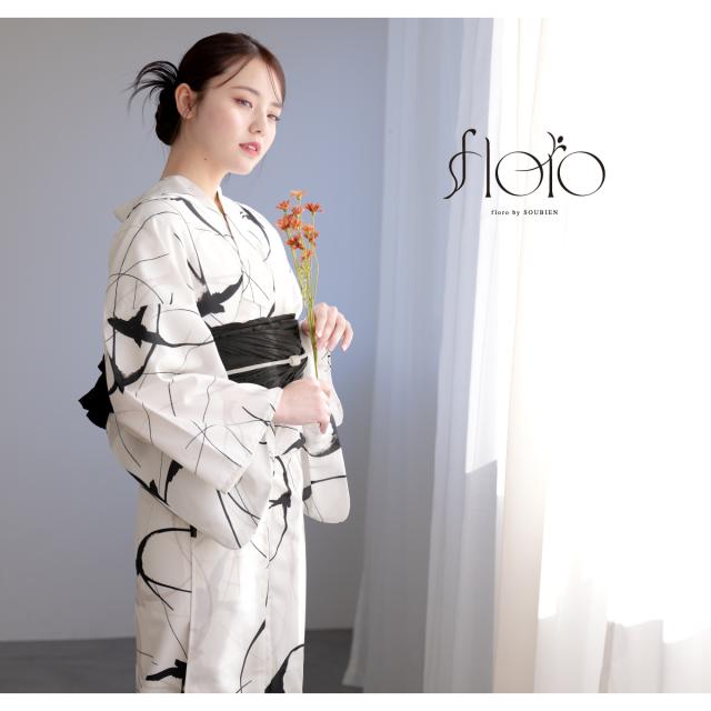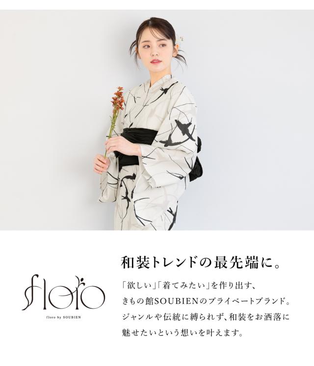 きもの館SOUBIENのプライベートブランド『floro by SOUBIEN』(フローロ)の華やかな女性用浴衣です。