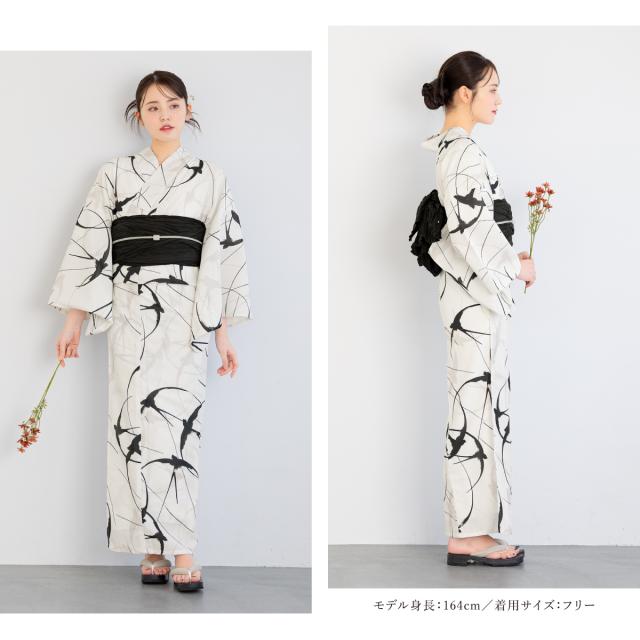 浴衣 セット レディース 浴衣セット 兵児帯 2025 floro 簡単 涼しい 黒 白 燕 おしゃれ 可愛い 下駄 S フリー 送料無料