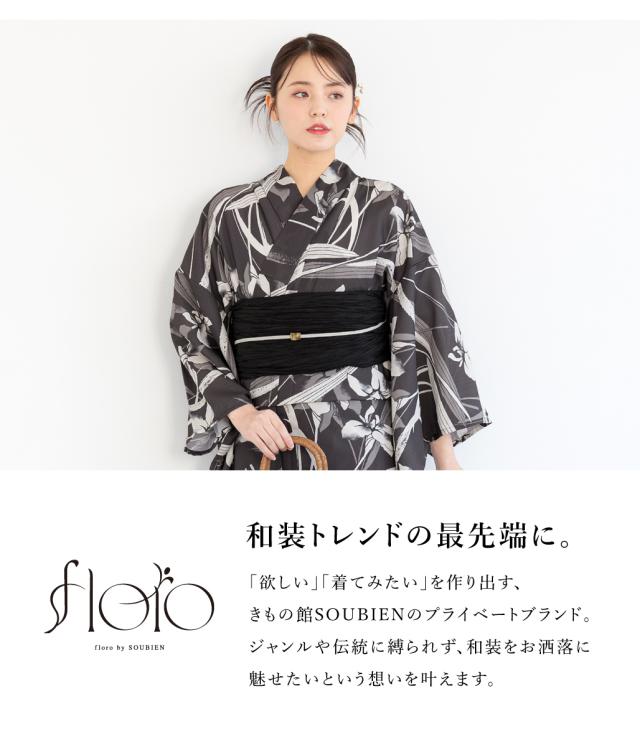 きもの館SOUBIENのプライベートブランド『floro by SOUBIEN』(フローロ)の華やかな女性用浴衣です。