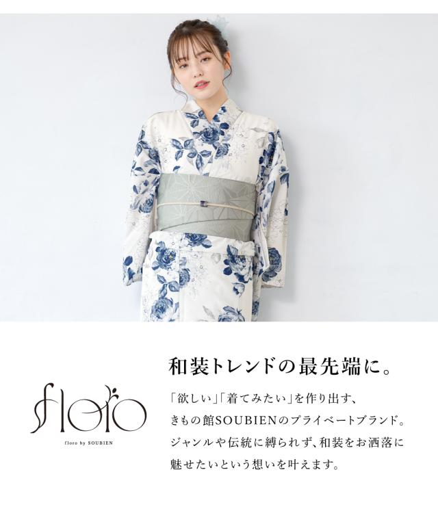 きもの館SOUBIENのプライベートブランド『floro by SOUBIEN』(フローロ)の華やかな女性用浴衣です。