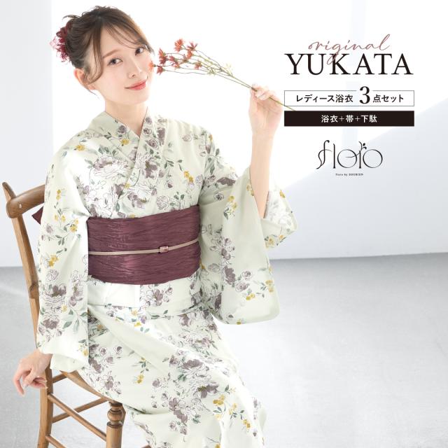 浴衣 セット レディース 浴衣セット 兵児帯 2025 floro 簡単 涼しい 白 紫 赤 花柄 おしゃれ 可愛い 下駄 S フリー 送料無料