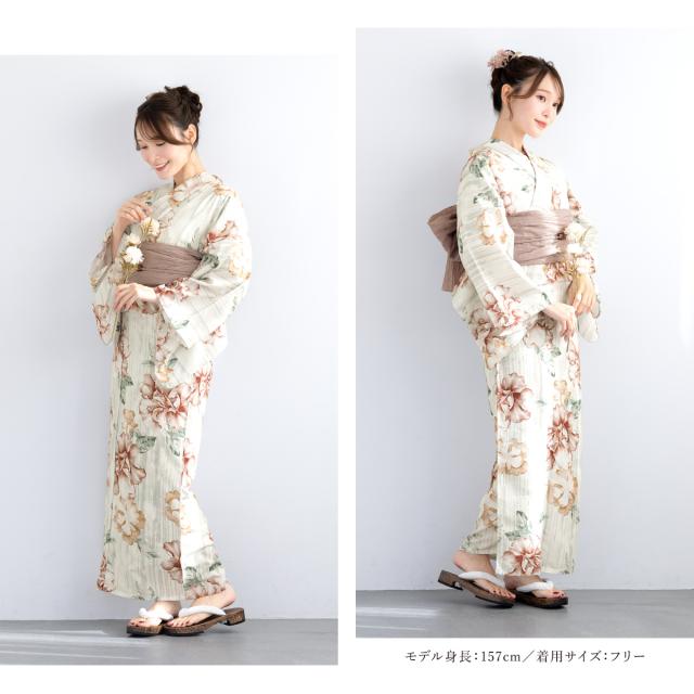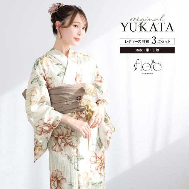 浴衣 セット レディース 浴衣セット 兵児帯 2025 floro 簡単 涼しい 白 赤 薄茶 花柄 おしゃれ 可愛い 下駄 S フリー 送料無料