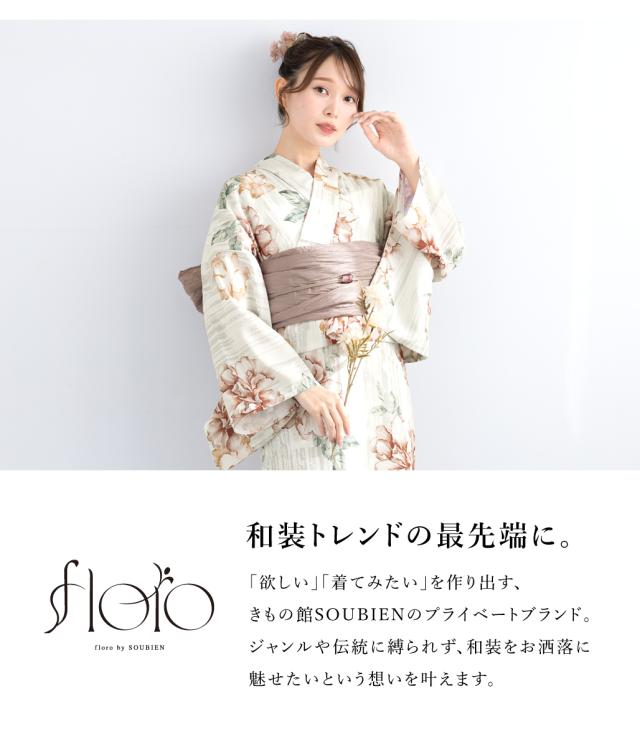 きもの館SOUBIENのプライベートブランド『floro by SOUBIEN』(フローロ)の華やかな女性用浴衣です。