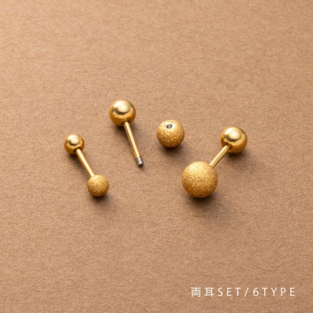 【ゆうパケット送料無料】 ステンレス製 ピアス 金属アレルギー つけっぱなし サージカルステンレス レディース ネジロック式 両側 サンドメタルボール 両耳用 3サイズ 大人 ゴールド シルバー