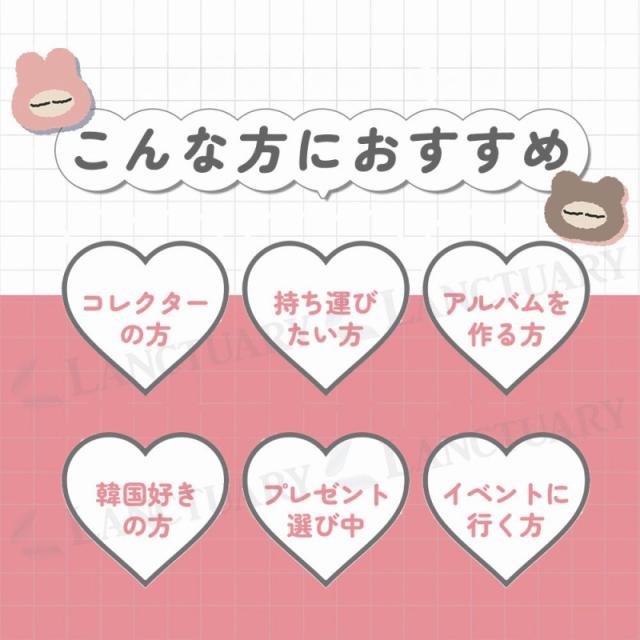 トレカだけでなく、写真やチェキを収納してオリジナルアルバムを作るのもおすすめです。バリエーションは、うさぎ、くま、リス、トラ、白猫、黒猫の全6種類。