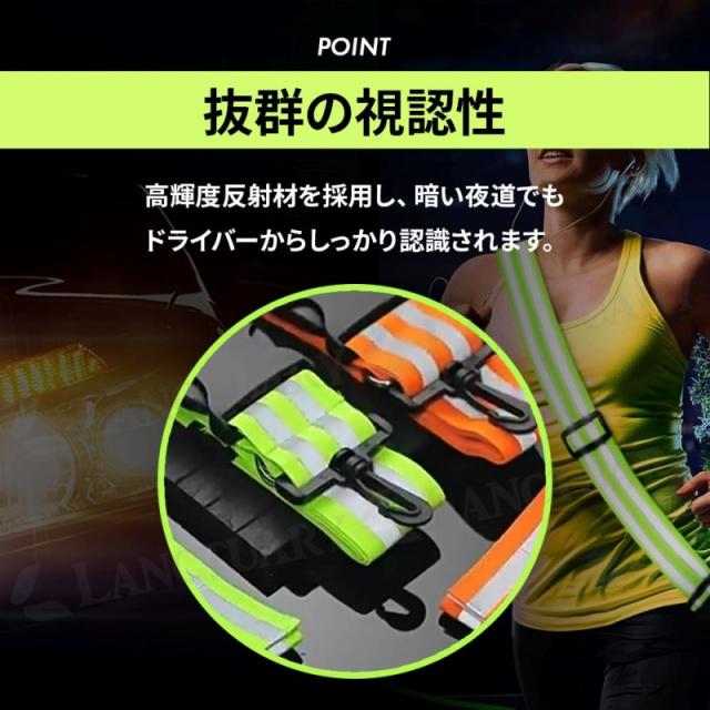 反射タスキバンド2セット 反射タスキ 反射ベスト アームバンド 夜間 ランニング ウォーキング サイクリング ジョギング 散歩 事故防止 安全対策 視認性向上