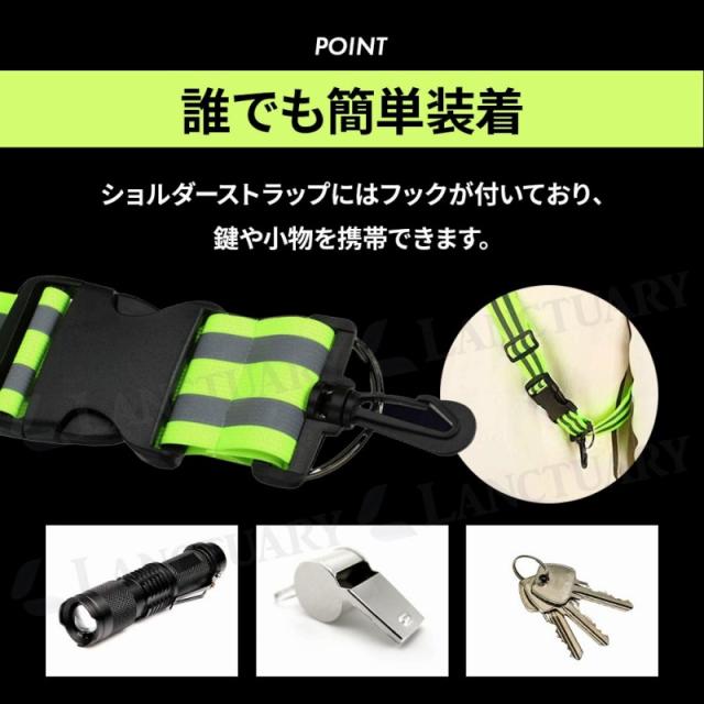 | 商品の説明 | 夜間や早朝の外出時の安全対策に、反射タスキバンド2セットはいかがでしょうか。高輝度反射材が、車のライトを強力に反射し、周囲にあなたの存在を知らせます。 伸縮性のある素材とサイズ調整機能により、体にぴったりとフィットし、ズレにくく快適な装着感です。ワンタッチバックルで着脱も簡単。ショルダーストラップには、鍵などを付けられるフック付きです。 ランニング、ウォーキング、サイクリング、犬の散歩など、様々なシーンで活躍します。大人から子供まで、家族みんなで使える安全対策アイテムです。 |