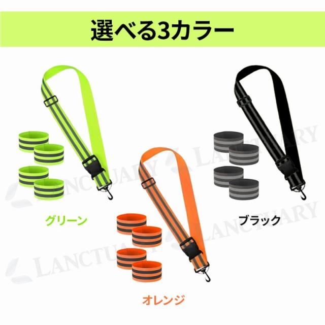 この反射タスキバンド2セットは、高品質で、夜間の安全対策におすすめです。カラーは、オレンジ、ブラック、グリーンの3色からお選びいただけます。