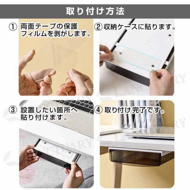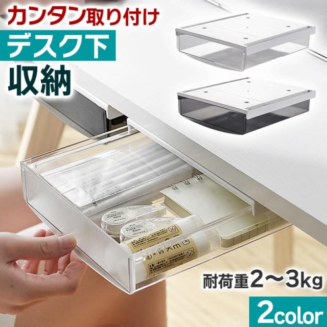 デスク下 後付け 引き出し 収納ケース 机下収納 小物入れ デスク収納 収納ボックス 取付け 隠し式 デスク整理 クリア ホワイト ブラック インテリア おしゃれ