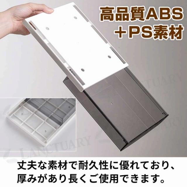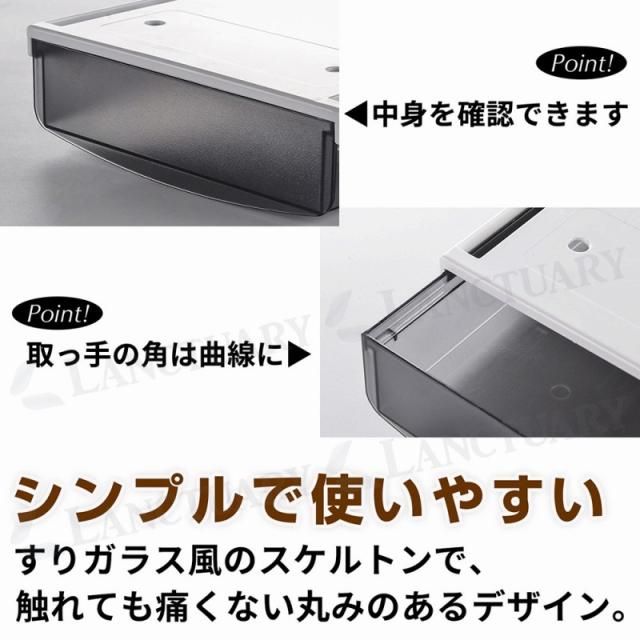 | 商品の説明 | スッキリ省スペース デスク周りに! デスクが散らかる、収納グッズを置くスペースがない、収納はインテリアの邪魔になる、ササッと片付けたいなどのお悩みに! 工具は不要!シールで貼るだけの簡単設置 【ワークデスクに後付け】デスク下のスペースを有効に活用! サッと引き出せて作業効率UPです 【本棚に後付け】本棚や収納スペースに散らばりやすい 小物収納を追加! 【キッチンにもおすすめ】透けて見えるデザインなので細々とした 台所用品も探しやすいです 高品質ABS+PS素材?丈夫な素材で耐久性に優れており、 厚みがあり長くご使用できます。 耐荷重 約2?3kg?しっかり密着するので脱落を気にせず たっぷり収納が可能です! 引き出しやすい設計?取っ手が下部にありスムーズに 最後まで引き出せ、落ちません シンプルで使いやすい?すりガラス風のスケルトンで、 触れても痛くない丸みのあるデザイン 様々な収納におすすめです!クローゼットやドレッサーなど 様々な箇所でお使いいただけます。 |