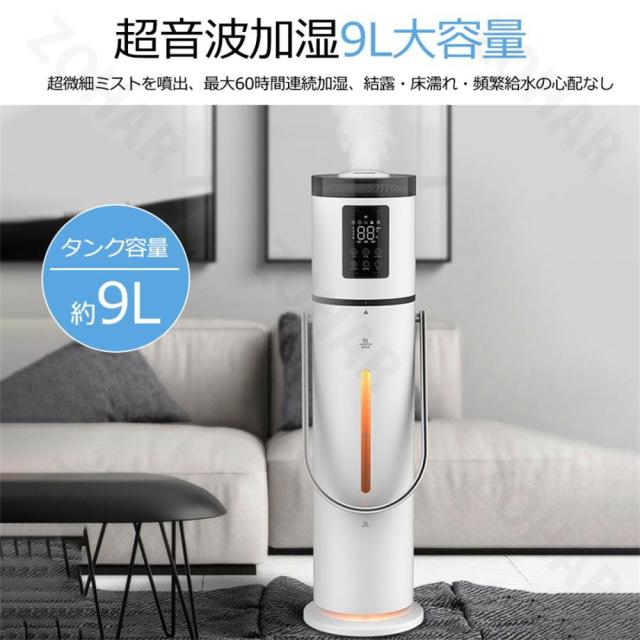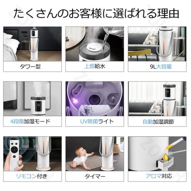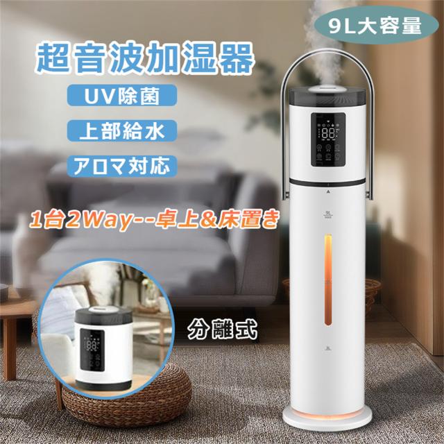 ★1年間保証★加湿器 大容量9L 1台2Way上下分離式 超音波式 空気清浄機 スチーム式 UV除菌 上から給水 卓上 タワー型 湿度設定 空焚き防止 静音 リモコン付き 大容量 次亜塩素酸水対応 タワー 湿度センサー 上から給水 お手入れ簡単 空焚き防止