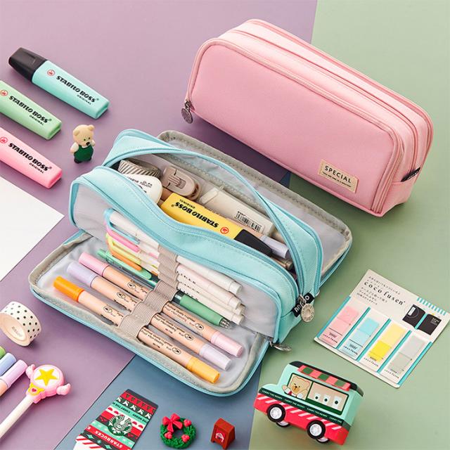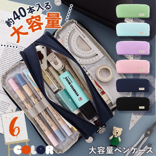 新作 ガバッと開く!大容量ファスナーポケットペンケース 筆箱 ペンケース ペンポーチ 文房具 筆記用具 男子 女子 男の子 女の子 子供 学校 小学生 中学生 高校生 大学生 大人 おしゃれ かわいい シンプル 韓国