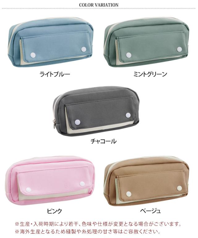 バイカラーデザインのポケットが可愛いペンケース