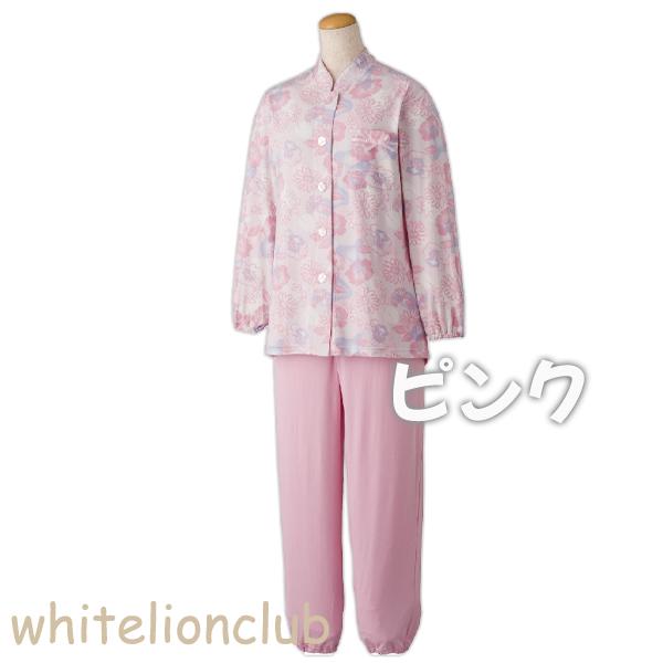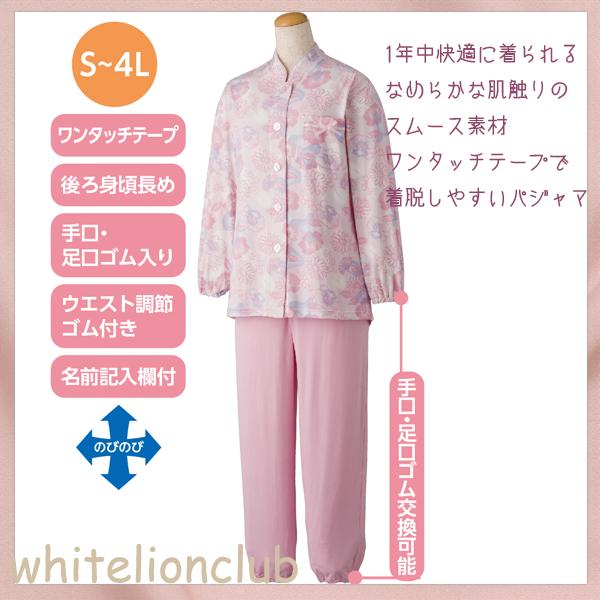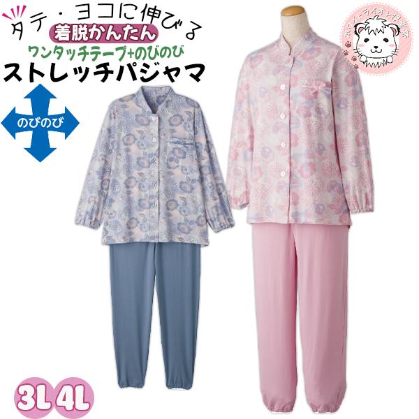 ワンタッチ のびのび ストレッチ パジャマ 手口 足口ゴム入り 長袖 長ズボン 3L/4L | パジャマ 全開パジャマ 介護パジャマ レディース 前開き かわいい ゆったり