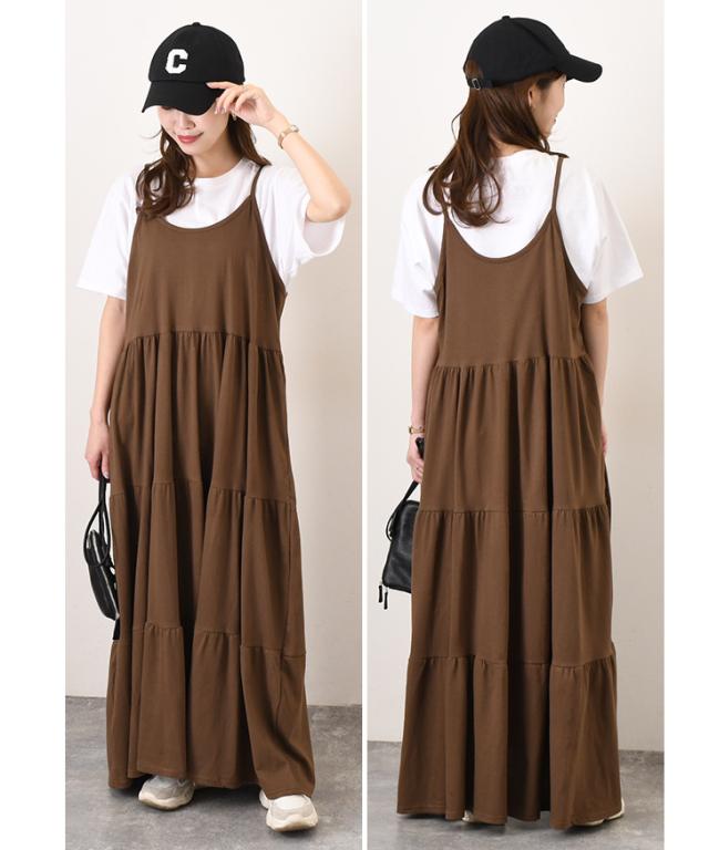 新作 ティアードマキシ丈キャミソールワンピース レディース きれいめ 春 夏 薄手 ロング丈 フレア Aライン 大きいサイズ 大きめ ゆったり 体型カバー カットソー コットン 綿 無地 カジュアル 可愛い 高身長