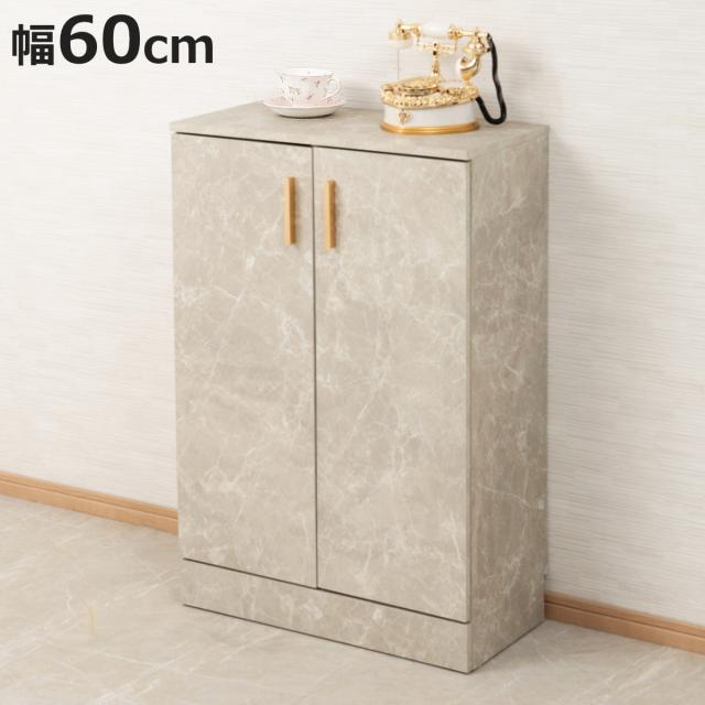 カウンター下収納 キャビネット 幅60cm 扉2枚 大理石調 ( JOLI ジョリシリーズ 組み合わせ カウンター下 収納 薄型 奥行スリム 可動棚 キッチン収納 大理石柄 )