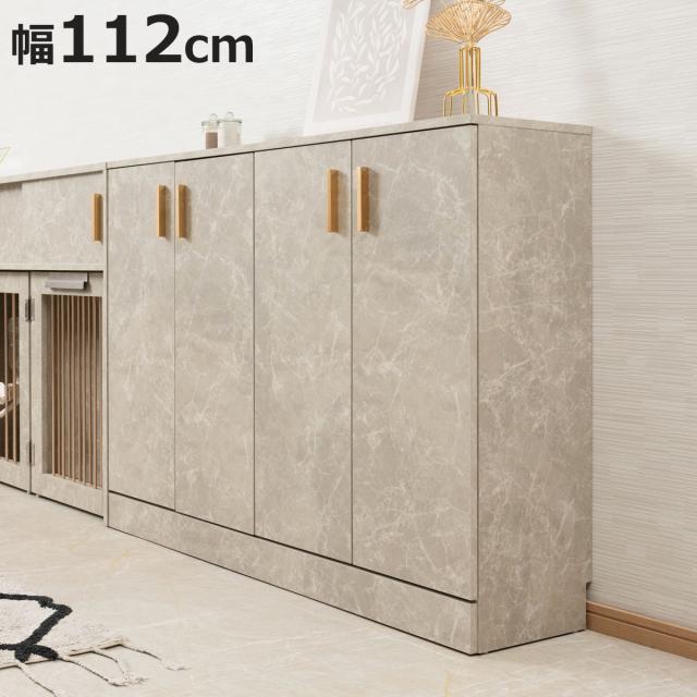 カウンター下収納 キャビネット 幅112cm 扉4枚 大理石調 ( JOLI ジョリシリーズ 組み合わせ カウンター下 収納 薄型 奥行スリム 可動棚 キッチン収納 大理石柄 )