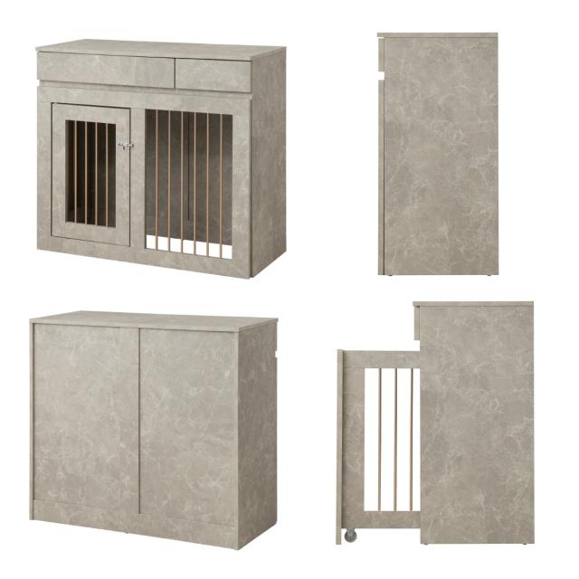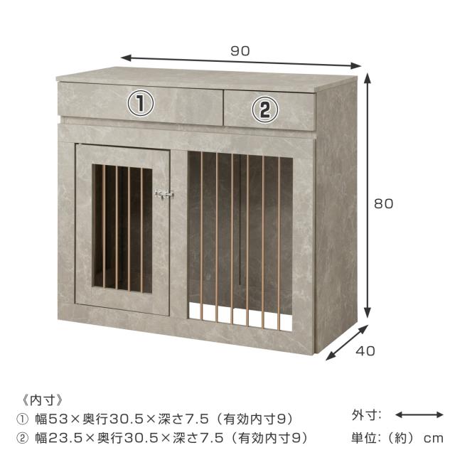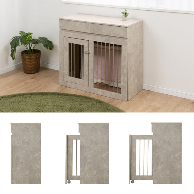 ペットケージ 幅90cm スライド式 キャビネット 大理石調 ( ケージ JOLI ジョリシリーズ 室内用 ペットサークル 組み合わせ カウンター下 収納 ゲージ 犬 ペットフェンス 薄型 奥行スリム 可動棚 大理石柄 スライド 伸長 )