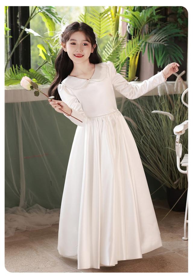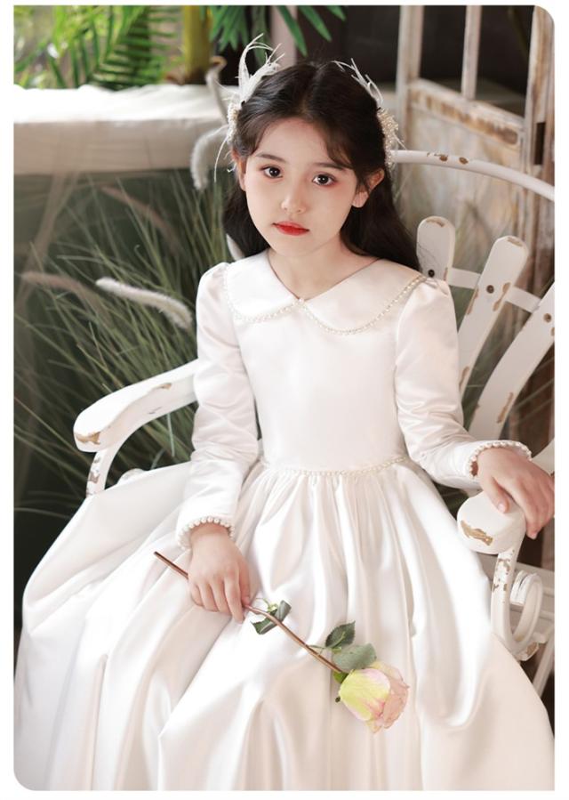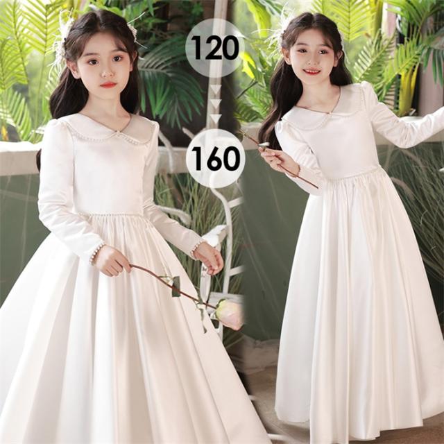 ピアノ発表会 ドレス 子供 女の子 ホワイト 白 発表会ドレス 長袖 子ども ワンピース お祝い日 演奏会 音楽会 フォーマル 誕生日 撮影 パーティー ジュニア キッズ ロングドレス ロング 可愛い 七五三 結婚式 卒業式 入学式 ds483d7d7x7 ds483d7