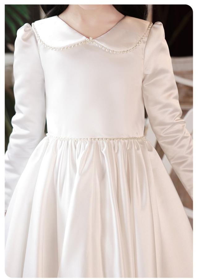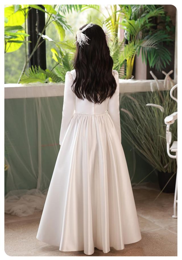ピアノ発表会 ドレス 子供 女の子 ホワイト 白 発表会ドレス 長袖 子ども ワンピース お祝い日 演奏会 音楽会 フォーマル 誕生日 撮影 パーティー ジュニア キッズ ロングドレス ロング 可愛い 七五三 結婚式 卒業式 入学式