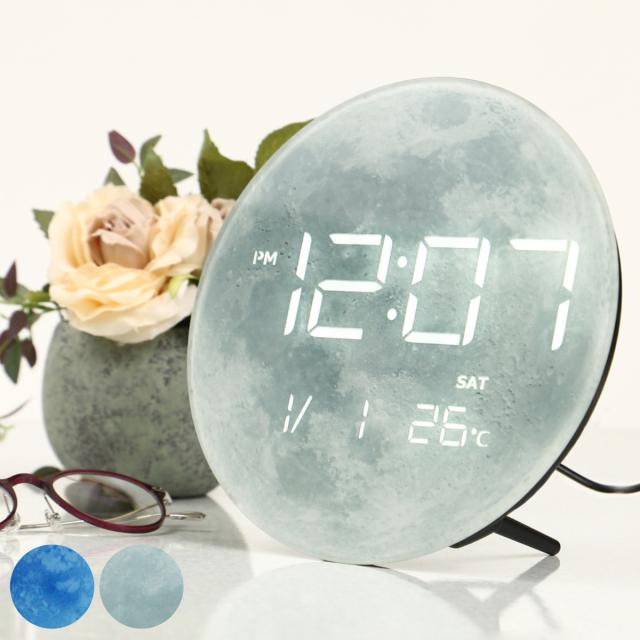 置き時計 デジタル MAG LED カレンダー付き 温度計付き ノア精密 ( 時計 置き型 月面 地球 デジタル時計 カレンダー 温度計 日付 曜日 卓上 LED表示 USB給電 デジタル表記 直径20cm 月 宇宙 おしゃれ かわいい 自動減光機能 Type-C )