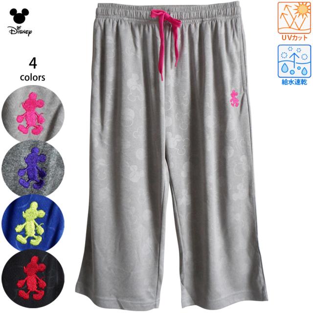 送料無料 ディズニー ミッキーマウス ハーフパンツ 短パン 7分丈 速乾 ドライウェア レディース メンズ ミッキーウォーク ヨガパンツ ヨガ ピラティス フィットネス ジョギング トレーニング ジム サウナ 刺繍 ワンポイント 透かし パジャマ リラコ グレー ネイビー 黒