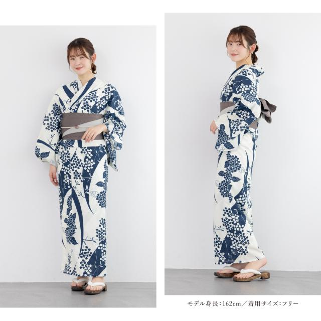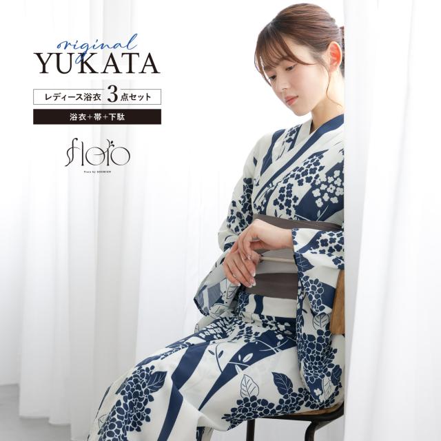 浴衣 セット レディース 浴衣セット 半幅帯 2025 floro 簡単 涼しい 白 青 紺 グレー 花 おしゃれ 可愛い 下駄 S フリー 送料無料