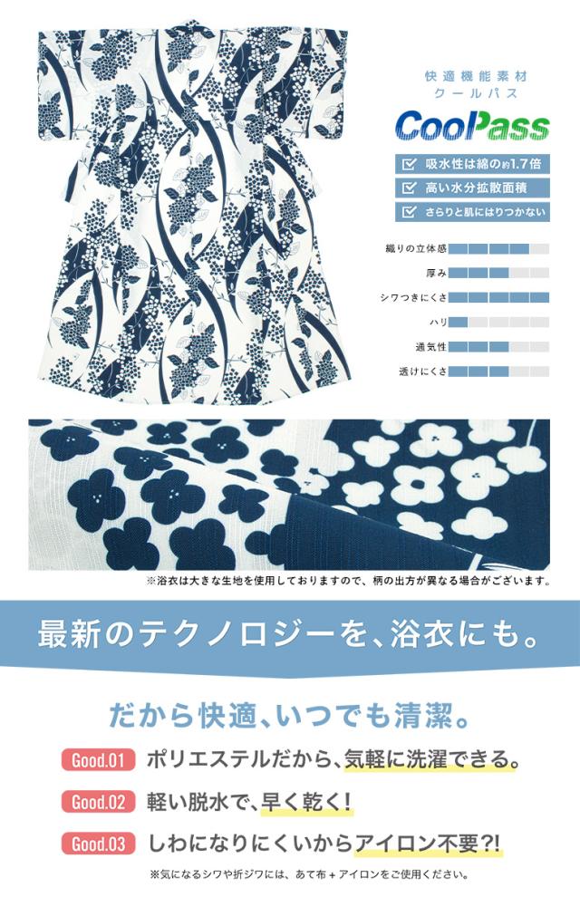 生地は変わり織りで、ひんやりとした肌触りで、吸汗性と速乾性の繊維のCoolPassを使用しています。