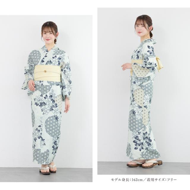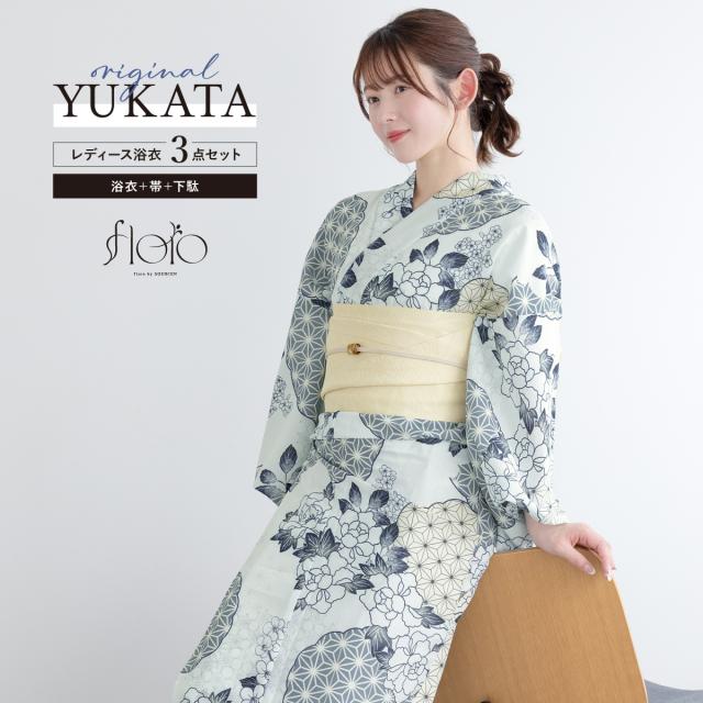 浴衣 セット レディース 浴衣セット 半幅帯 2025 floro 簡単 涼しい 白 青 緑 牡丹 花柄 おしゃれ 可愛い 下駄 S フリー 送料無料