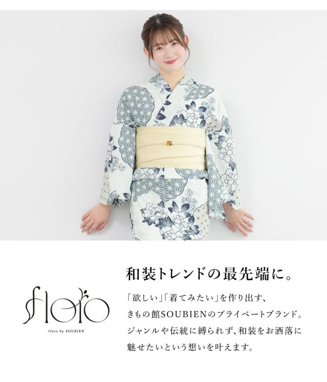 きもの館SOUBIENのプライベートブランド『floro by SOUBIEN』(フローロ)の華やかな女性用浴衣です。