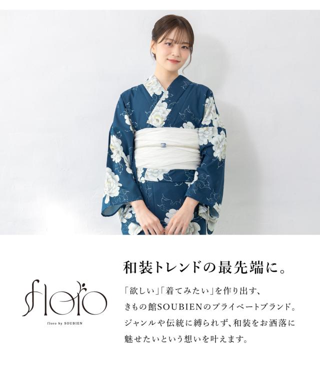 きもの館SOUBIENのプライベートブランド『floro by SOUBIEN』(フローロ)の華やかな女性用浴衣です。