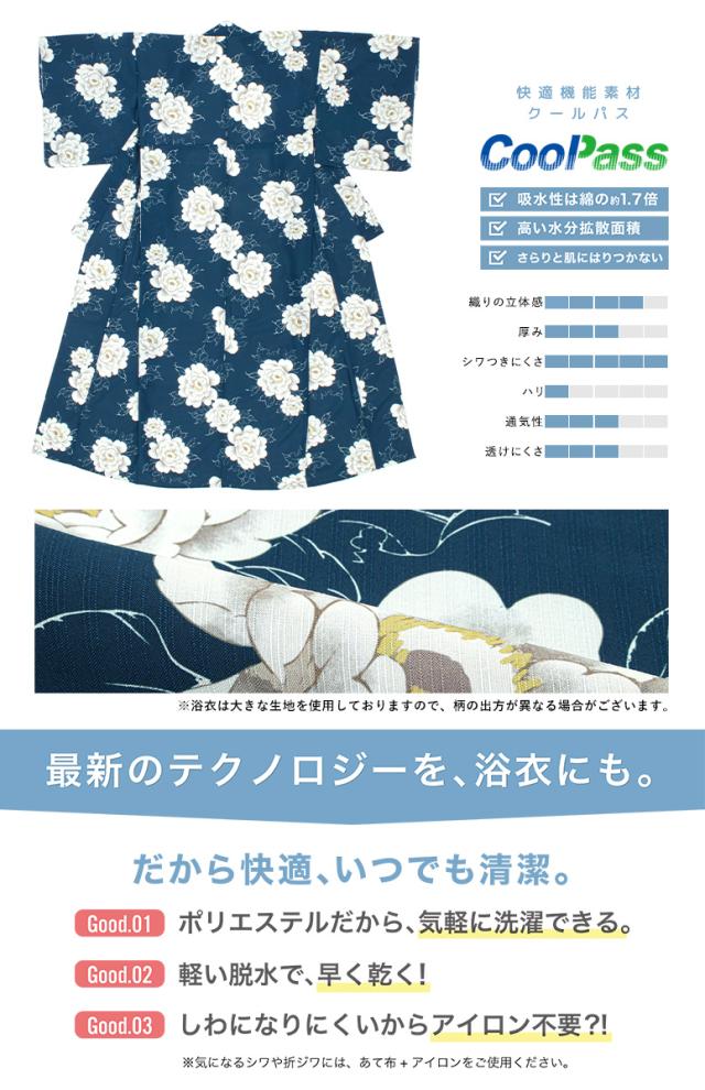 生地は変わり織りで、ひんやりとした肌触りで、吸汗性と速乾性の繊維のCoolPassを使用しています。