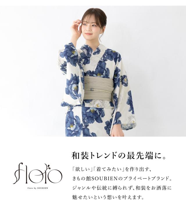 きもの館SOUBIENのプライベートブランド『floro by SOUBIEN』(フローロ)の華やかな女性用浴衣です。